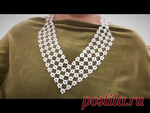 V-образное колье из жемчуга и бисера. Pearls necklace V-imaging