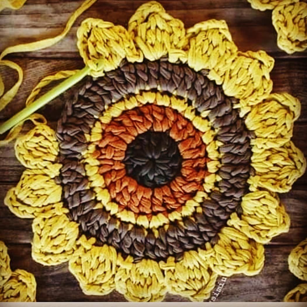 Подставка под горячее "Подсолнух". Крючком. Схема. / knittingideas.ru
