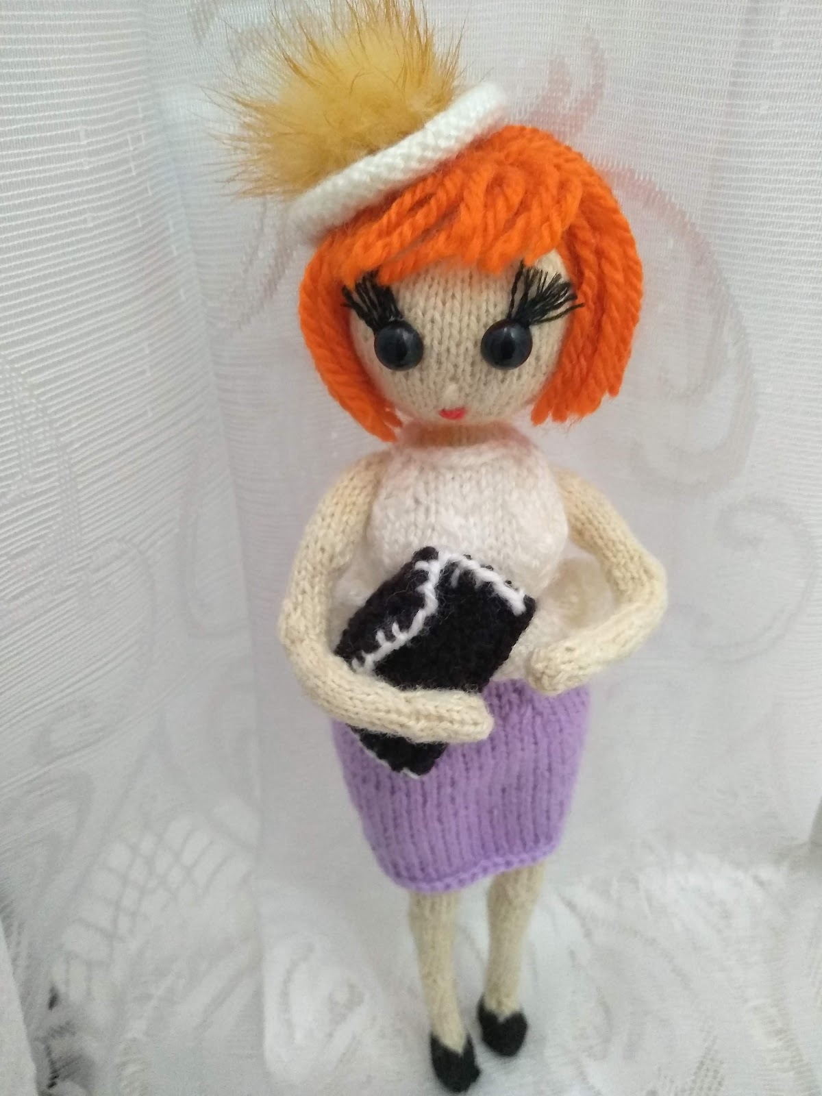 Кукла в стиле ретро. Костюм дополняют мини клатч и шапочка. Вязаные игрушки - подарок любимым