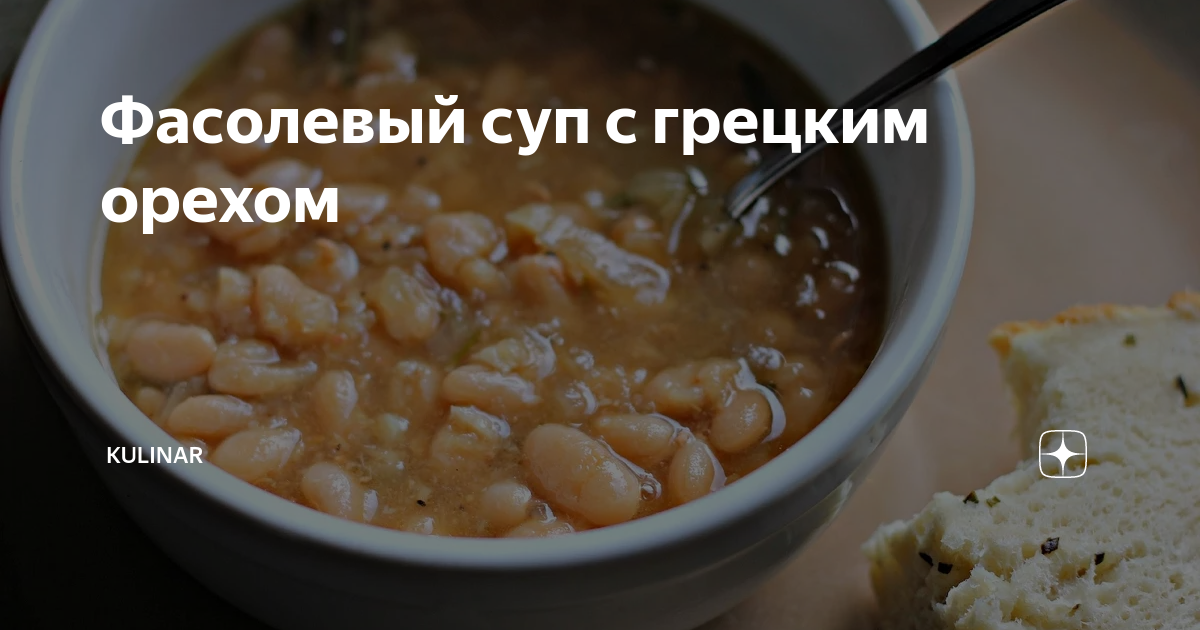 Фасолевый суп с грецким орехом Суп из фасоли - правильная зимняя закуска. Этот фасолевый суп имеет приятный вкус и содержит много белка. Добавив в нег грецкий орех улучшаются вкусовые качества и питательность супа.