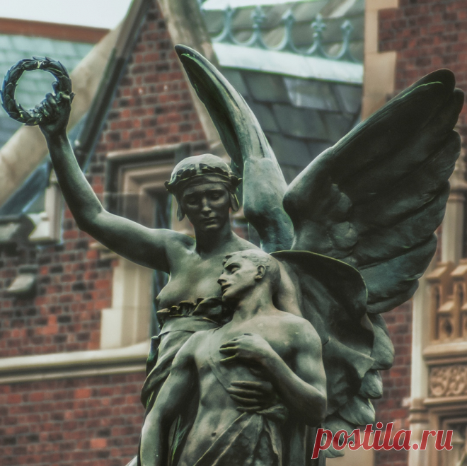 Крылатая богиня победы Виктория удерживает павшего юношу. Этот памятник посвящен памяти сотрудников и студентов Университета Королевы в Белфасте (Северная Ирландия), которые были убиты или пропали без вести во время Первой мировой войны (253 имени) и во время Второй мировой войны (155 имен). Многие такие мемориалы были установлены после Первой мировой войны. А после Второй мировой войны к ним были добавлены новые имена. https://www.instagram.com/sculptury_na_zakaz/ #памятник #статуя
