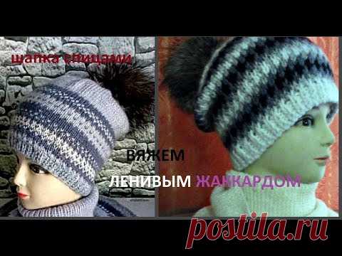 #ВЯЖЕМ ШАПКУ ЛЕНИВЫМ ЖАККАРДОМ #МК #шапкиспицами #вяжемспицами