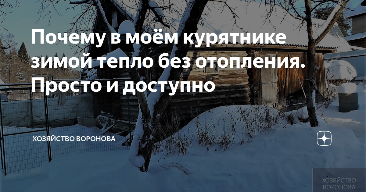 Почему в моём курятнике зимой тепло без отопления. Просто и доступно автор канала Вячеслав Воронов Тема статьи - почему в моём курятнике зимой тепло без отопления. Для сохранения и приумножения тепла в курятнике, просто нужно понимать из каких источников приходит тепло и куда оно уходит, только тогда можно принять верные решения. ИЗ ЧЕГО СДЕЛАН МОЙ КУРЯТНИК