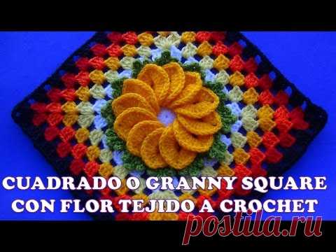 Cuadrado o Granny Square a crochet para colchas y cubrecamas con flor de 12 pétalos paso a paso