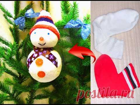 Снеговик из носка. Как сделать снеговика из носка - YouTube