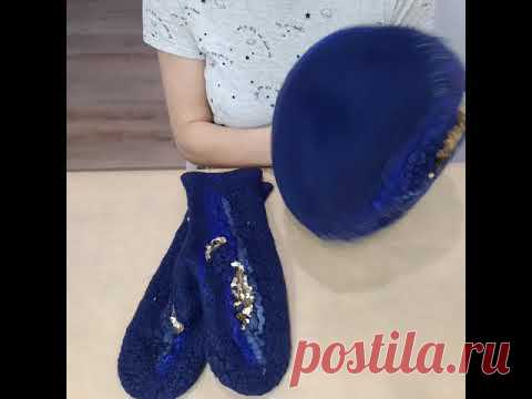 Комплект валяный шапочка и варежки