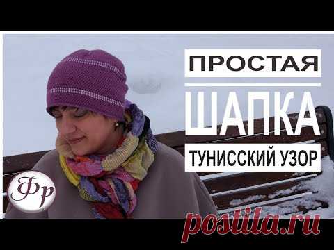 Простая шапка на весну тунисским вязанием. Как убавлять петли
