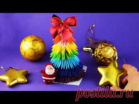 Как сделать радужную елку из цветной бумаги в технике модульное оригами