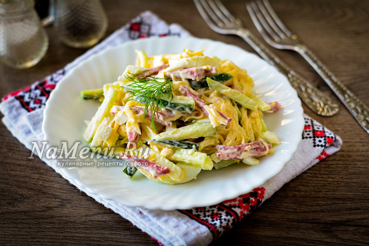 Салат "Соломка" с копченой колбасой и сыром - рецепт с фото пошагово