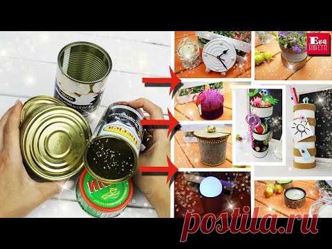 8 ИДЕЙ поделок из КОНСЕРВНЫХ БАНОК своими руками * Eva-Konfetti
