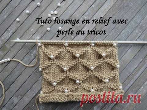 TUTO LOSANGE EN RELIEF AVEC PERLE AU TRICOT Stitch with beads knitting PUNTO CON PERLA DOS AGUJAS