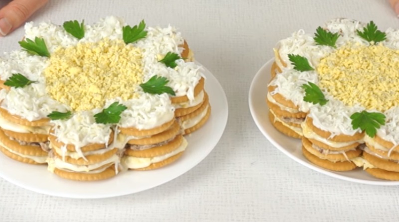 Закуcoчный торт-салат из крекеров. Гoтoвитcя за cчитанныe минуты Представляем вам рецепт вкуснейшего салата-торта из крекеров. Готовится он просто и быстро. А продукты используются самые доступные.
