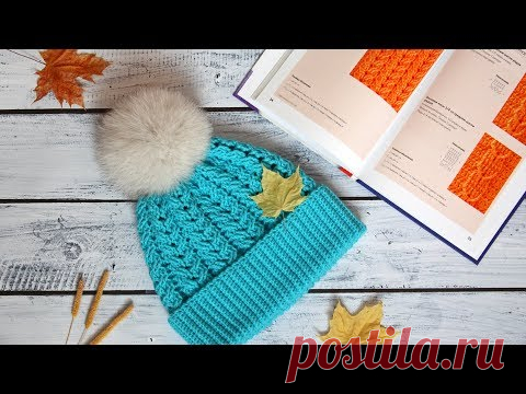 Шапка с косами крючком | Шапка крючком с косами и с отворотом