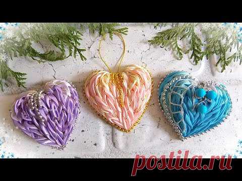 Новогодние игрушки своими руками из узких лент, сердечко канзаши / diy christmas ornaments