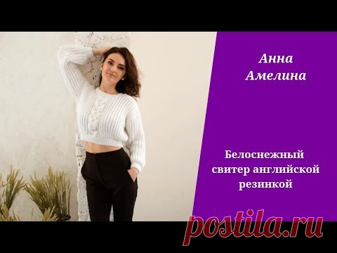 Короткий свитер английской резинкой с косой на полочке