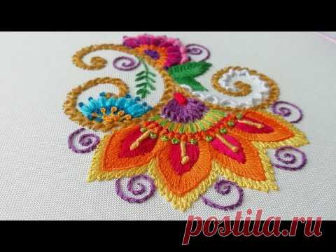 Индийская вышивка * Простые стежки * Декоративный цветок #malina_gm