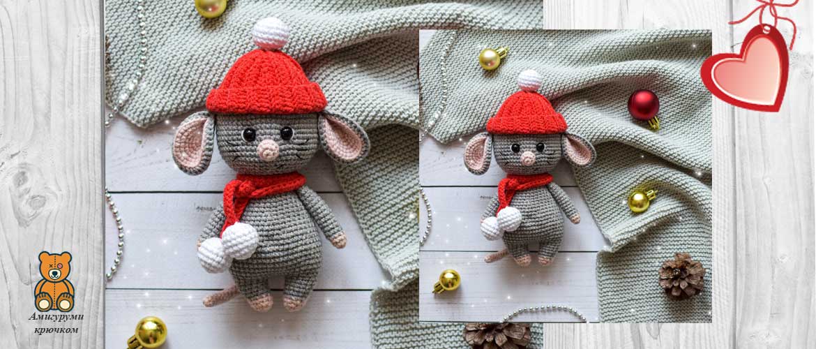 Новогодний мышонок крючком в красной шапочке. | Амигуруми крючком - Блог