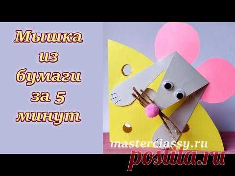 Простая поделка из цветной бумаги: мышка с сыром. Как сделать мышку из бумаги за 5 минут. Видео урок - YouTube