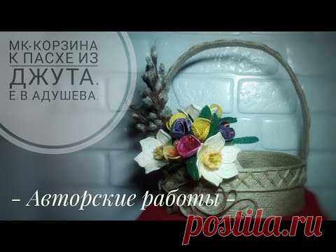 Корзина из джута с цветами. МК- Пасхальный декор ©2019. @evadusheva.