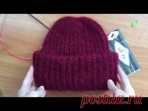 Шапка английской резинкой из мохера // Шапка такори из мохера спицами