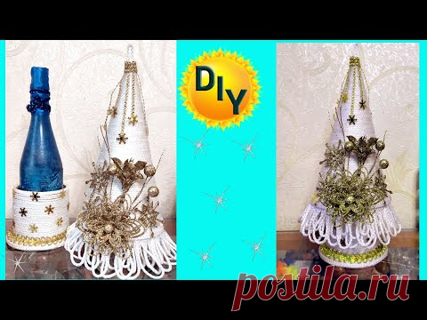 Футляр для новогодней бутылки + елочка. DIY/рукоделие #новогодниеукрашения