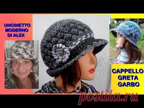 CAPPELLO UNCINETTO "GRETA GARBO" PUNTO CHIOCCIOLA CON TESA ALEX CROCHET TUTORIAL FACILE