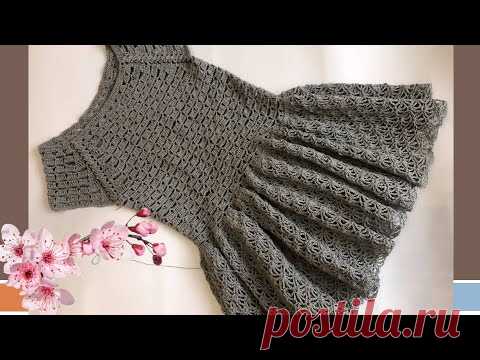 Вязаное платье крючком.Вязание крючком для начинающих.Кокетка реглан.Азиатский росток.Часть 1