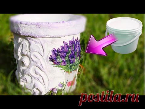 Горшок для цветов с вензелями из шпаклевки! Объемный декупаж