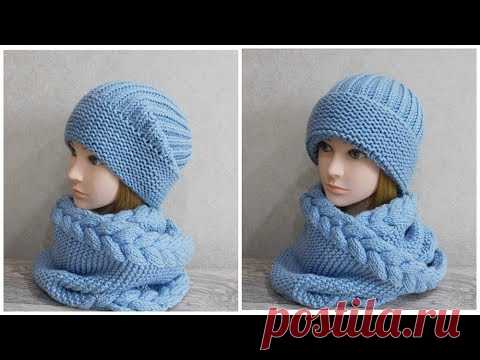 Женская шапка спицами.