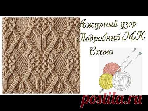 Ажурный японский узор спицами № 12. Из книги "260 узоров".