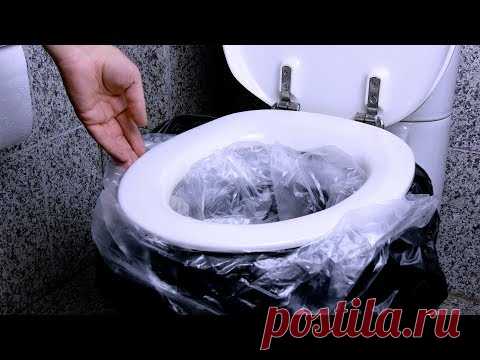 Кладем в унитаз 2 мешка для мусора. Это спасет в безвыходной ситуации!