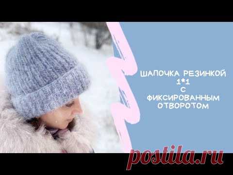 Вязаная шапка резинкой 1*1 // Фиксированный отворот// для новичков
