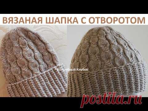 ВЯЗАНАЯ ШАПКА СПИЦАМИ С ОТВОРОТОМ. KNITTED HAT. МАСТЕР-КЛАСС