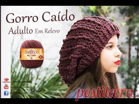 Gorro de Crochê Caído ADULTO em relevo - Professora Simone