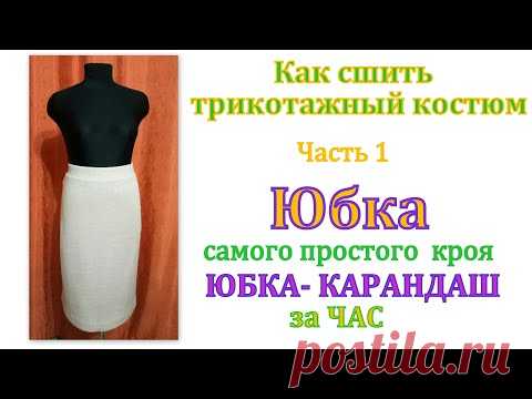 Как сшить трикотажный костюм. Часть 1 Юбка самого простого кроя/ юбка-карандаш за ЧАС