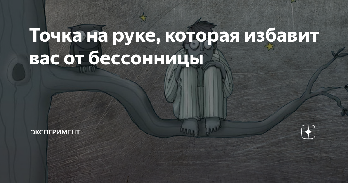 Точка на руке, которая избавит вас от бессонницы Всем привет, друзья! Сегодня я хочу показать вам две точки на вашем теле, которые избавят вас от бессонницы. Вы больше никогда не будете принимать медикаментозные препараты, для того чтобы уснуть. Нужно понимать, что это работа не одного дня, поэтому придётся немного постараться.