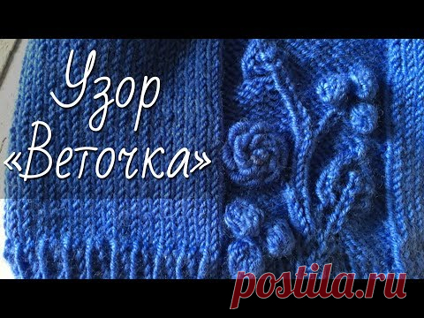Узор спицами «Веточка с шишечками и листиками» + вышивка «Цветок». Экспресс МК для вязания по кругу. - YouTube