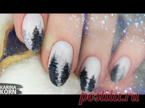 🎄Акварель маникюр /🌲 Дизайн ногтей маркером / ТРЕНД Зимний лес / Модный маникюр из Инстаграм