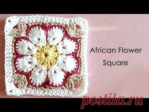 アフリカンフラワーモチーフの編み方(四角形) * African Flower Square Crochet Motif *