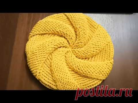 Шапка берет-крючком. Берет по спирали, рельефными столбиками