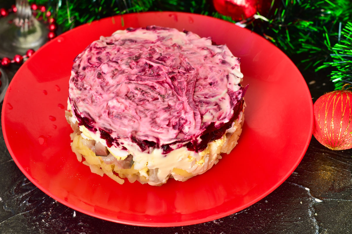 Салат "Наваждение" - очень красивый и яркий салат на праздничный стол Салат «Наваждение» – это сытная и вкусная закуска, которую смело можно подать на новогодний стол. Готовится она из доступных продуктов.