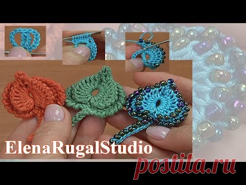 Вязание объёмного листика с бисером и без Урок 55 Подробный мастер-класс