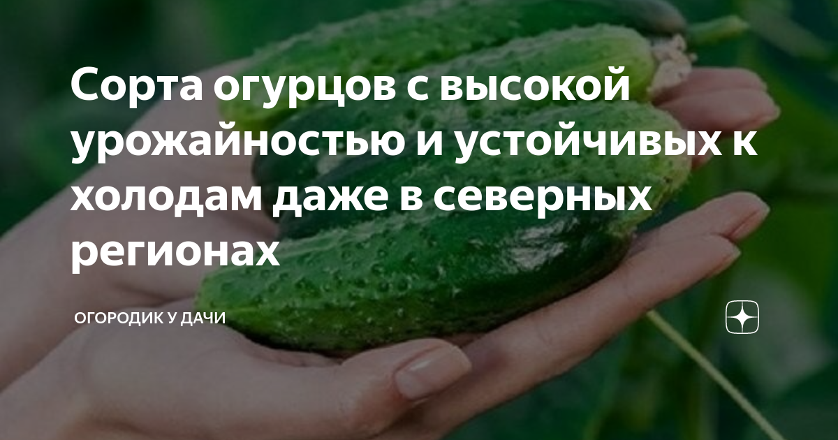 Сорта огурцов с высокой урожайностью и устойчивых к холодам даже в северных регионах Даже если вы живете в местности с суровыми климатическими условиями, это не значит что нужно отказываться от выращивания огурцов. Благо, современные селекционеры вывели гибридные сорта, выдерживающие довольно низкие температуры (+2...+3 градуса). В сегодняшней публикации мы ознакомим вас с холодостойкими сортами огурчиков, имеющие высокую урожайность. Фото из открытого источника Яндекс, без