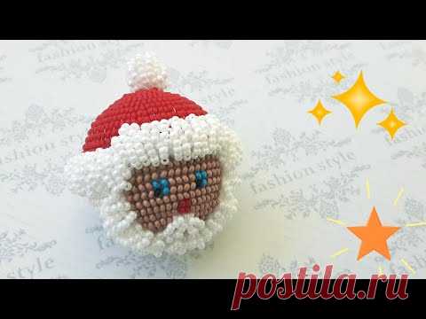 Дед Мороз на теннисном шарике. Оплетение бисером. Новогодние игрушки из бисера. Часть 1