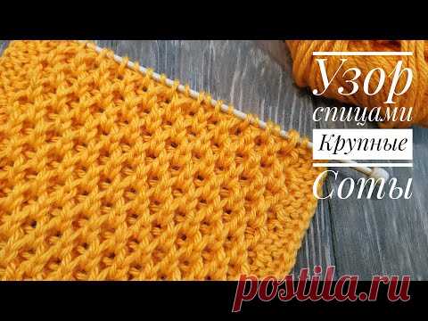 Как связать узор крупные соты спицами, видео-урок и схема, Узоры для вязания спицами
