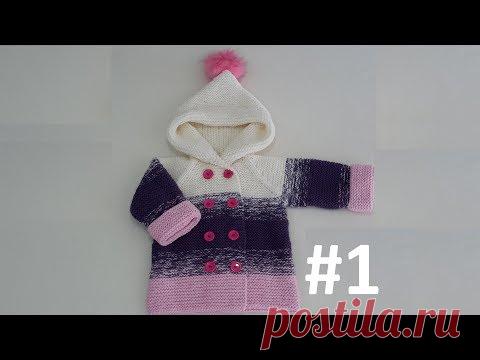Как вязать - Трехцветный детский кардиган / жакет с капюшоном # 2