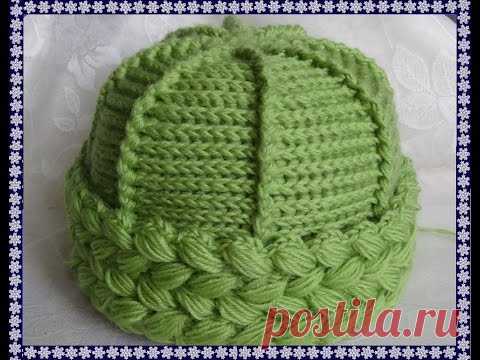 Вяжем крючком - шапочка с отворотом из пышных столбиков - YouTube