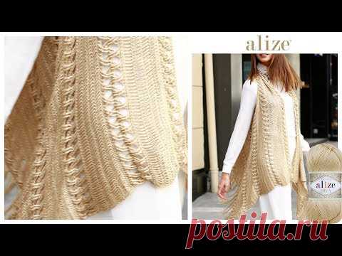 Alize Diva ile Tığ İşi Püsküllü Yelek - Crochet Fringe Vest with Alize Diva