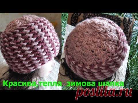 Красива ,тепла зимова шапка спицями. Beautiful knitting hat.