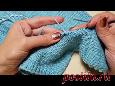 Обвязка горловины (ложная кеттлевка) + закрытие петель иглой по кругу.